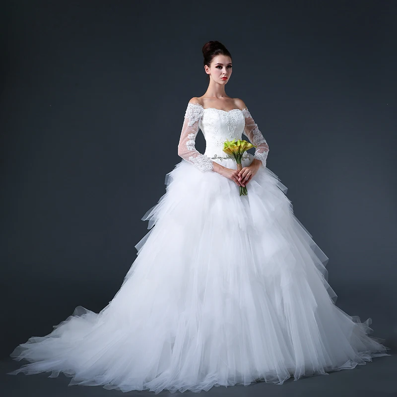 Romantic Bridal Gown Long Sleeves Illusion Crystal Pearl ... from cdn.shopify.com Romantic lace and tulle scalloped long sleeve ball gown wedding dress.