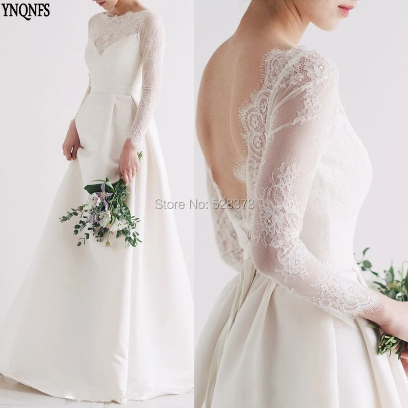 22+ Simple Long Sleeve Low Back Wedding Dress Pics. Modest elegant long sleeve satin wedding gown with cathedral train and buttons. A simple silhouette, this crepe wedding dress.